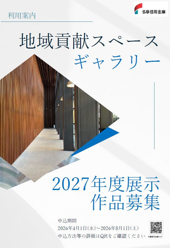 多摩信用金庫本店2階ギャラリー(地域貢献スペース)は、公募制の展示スペースです。このたび、2027年度に展示を実施する個人または団体を募集いたします。